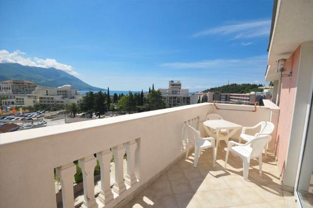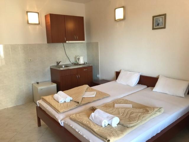Apartmani: Predviđeni za smeštaj 2 do 4 odrasle osobe. Sastoje se od spavaće sobe sa francuskim krevetom i dnevne sobe sa sofom na razvlačenje i mini čajnom kuhinjom (sa mini-frižiderom). Opremljeni su kupatilom (TWC), fenom, TV-om, klima-uređajem, besplatnim Wi-Fi internetom i terasom ili balkonom. Minimum za rezervaciju su dve odrasle osobe, a maksimum četiri odrasle osobe (ili dve odrasle osobe i dvoje dece do 11.99 godina).