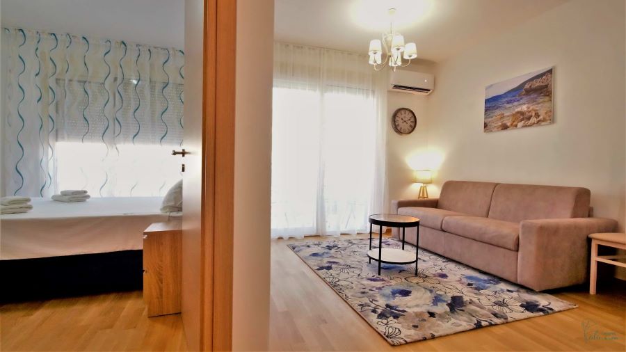 Studio:Studio sa balkonom i pogledom na planine idealan je za do 3 osobe. Sadrži francuski krevet, sofu na razvlačenje, čajnu kuhinju i kupatilo sa tušem.