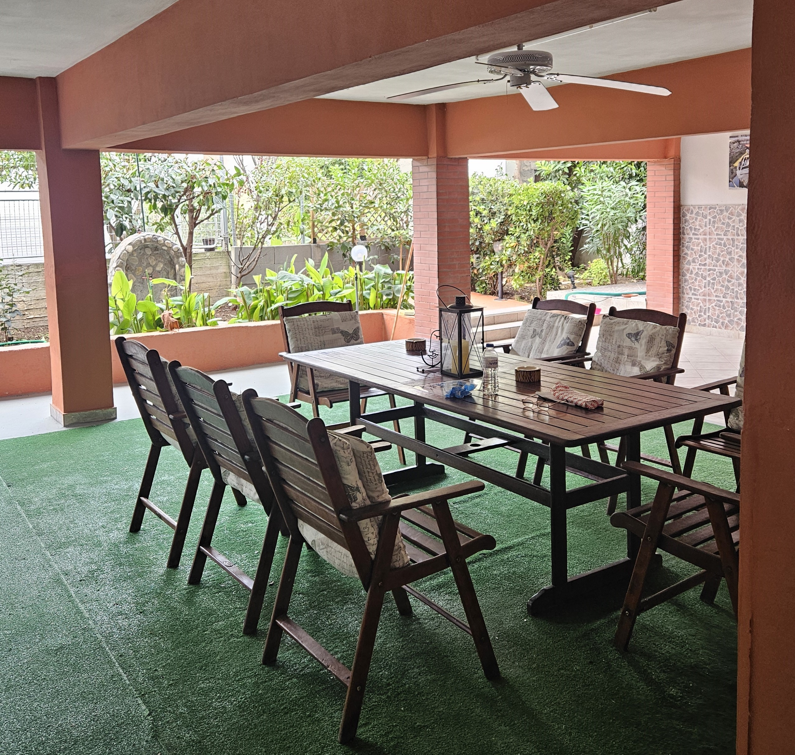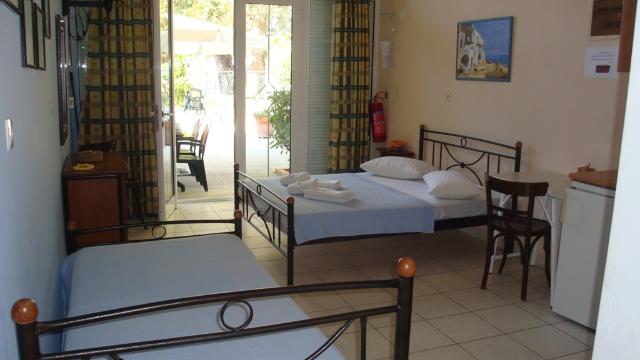 Opis i lokacija: Jednospratna kuća sa studijima u prizemlju i na prvom spratu. Nalazi se u mirnom delu centra Pefkija, u neposrednoj blizini glavnog šetališta, taverni i prodavnica. Kuća ima lepo uređeno dvorište puno zelenila i cveća.