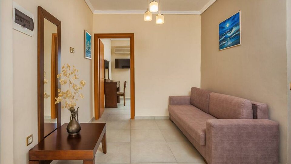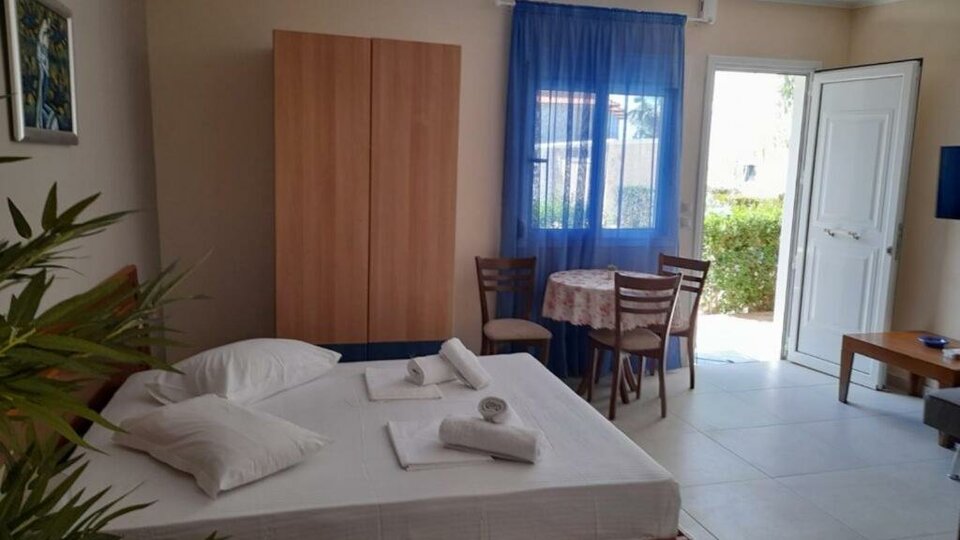 Opis i lokacija : Objekat apartmanskog tipa, kategorisan sa 3 grčka ključa za kvalitet nalazi se na ulasku u Pefkohori, nekih 50m od mora. Sastoji se od dve glavne zgrade i jedne manje aneks zgrade sa smeštajnim jedinicama, a organizovani restoran, otvoreni bazen sa delom za decu, bar pored bazena, besplatan parking, igralište i uređeno dvorište obećavaju pravi odmor. Centar Pefkohorija je na nekih 1,5km udaljenosti.