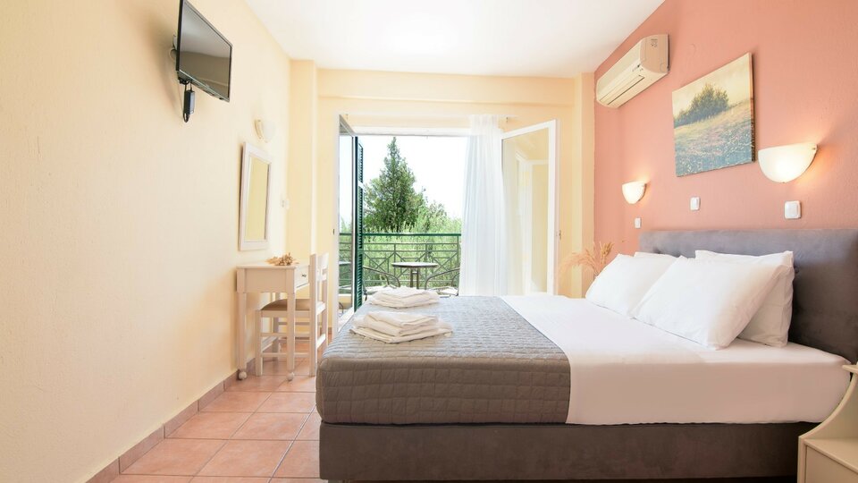 Klasik soba u prizemlju - smeštajne jedinice sa francuskim ležajem i dodatnim krevetom. Nalaze se u prizemlju .Maksimalni broj osoba u sobi su dve odrasle , jedno dete do 12 godina i beba.