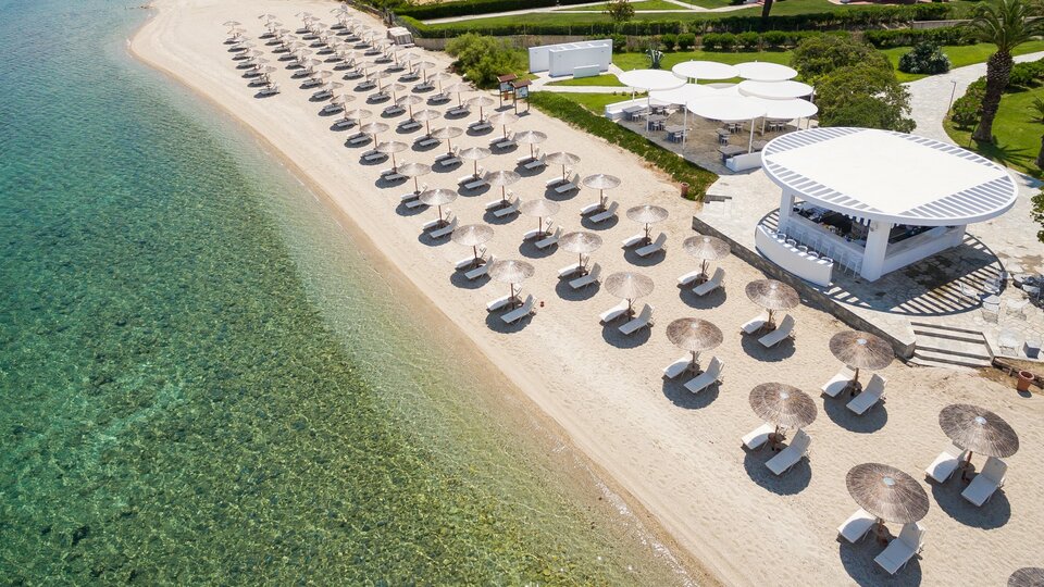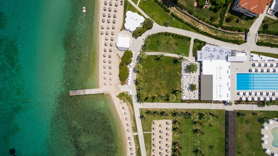 Opis i lokacija: Hotelski kompleks smešten na prostranom imanju leži duž mirne plaže Kriopigi na Halkidikiju. Glavna zgrada i bungalovi se sastoje od lepo uređenih soba i apartmana, dizajniranih sa klasičnim arhitektonskim linijama, besprekorno spajajući tradiciju. Okružen raskošnim vrtovima, smeštaj sa 5 zvezdica Kasandra Palace u Kriopigiju poziva vas da uživate u trenucima mira i spokoja u njegovom raskošnom okruženju i potpuno se prepustite dok uživate u panoramskom pogledu na beskrajno Egejsko more. Kasandra Palace je poznat po tome što svojim gostima nudi prvoklasno, prijateljsko gostoprimstvo.