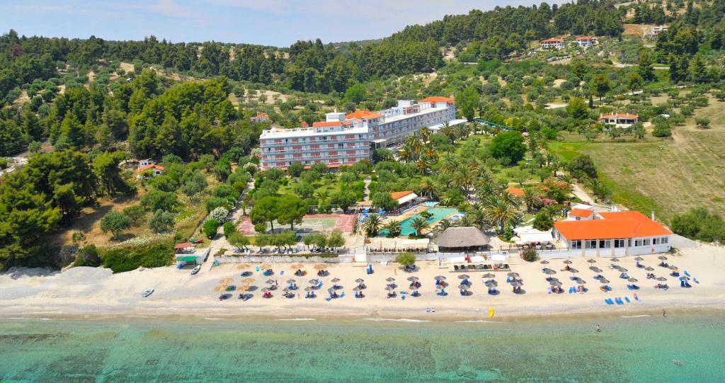 Opis i lokacija : Dugačka peščana plaža, borova šuma koja ga okružuje, prostrane sobe sa prekrasnim pogledom, odlična usluga i gostoprimstvo čine ovaj hotel odličnim izborom za porodice sa decom. Nalazi se na zapadnoj strani poluostrva Kasandra, između mesta Posidi i Nea Skioni. U blizini hotela nalaze se ostaci antičkih svetilišta Mendi po kojima su cela oblast i hotel nazvani.