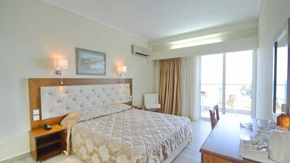 Superior soba pogled more – Poslednje renovirane smeštajne jedinice sa francuskim ležajem ili dva osnovna kreveta . Veličine su oko 25m2. Maksimalni broj osoba u sobi su dve.