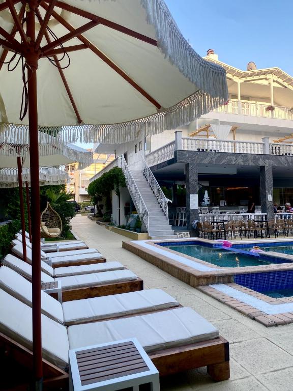 Ležaljke i suncobrani: Dostupni za goste hotela oko bazena (ograničenog kapaciteta).