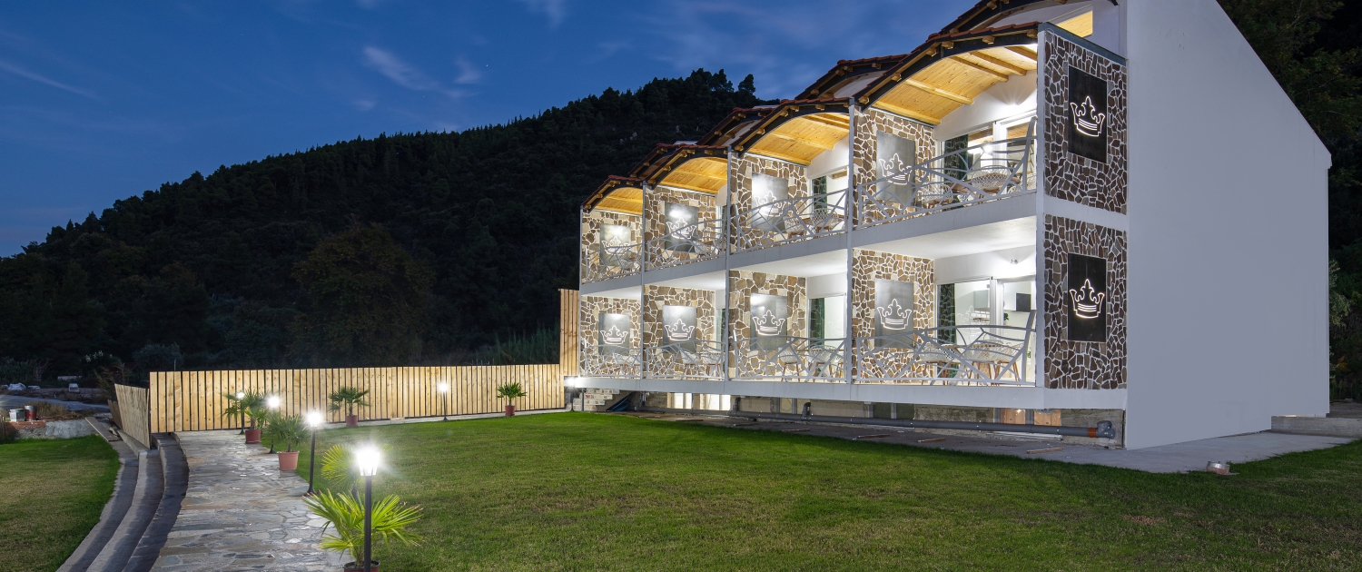 Opis i lokacija : Simon King je luksuzan objekat apartmanskog tipa kategorisan sa 4 grčka ključa za kvalitet .Nalazi u mestu Vurvuru, na Sitoniji, na oko 600 metara od plaže. Izgrađen na odličnoj lokaciji gde se sa jedne strane prostiru šumski predeli a sa druge pruža prelepo more. Objekat poseduje otvoreni bazen, baštu i terasu za sunčanje. Besplatan bežični internet je dostupan u celom objektu. Objekat takođe nudi igralište i uređen prostor za roštilj. Gosti takođe imaju mogućnost iznajmljivanja bicikala i uživanja u prelepom mestu Vurvuru ili obližnjim predelima.