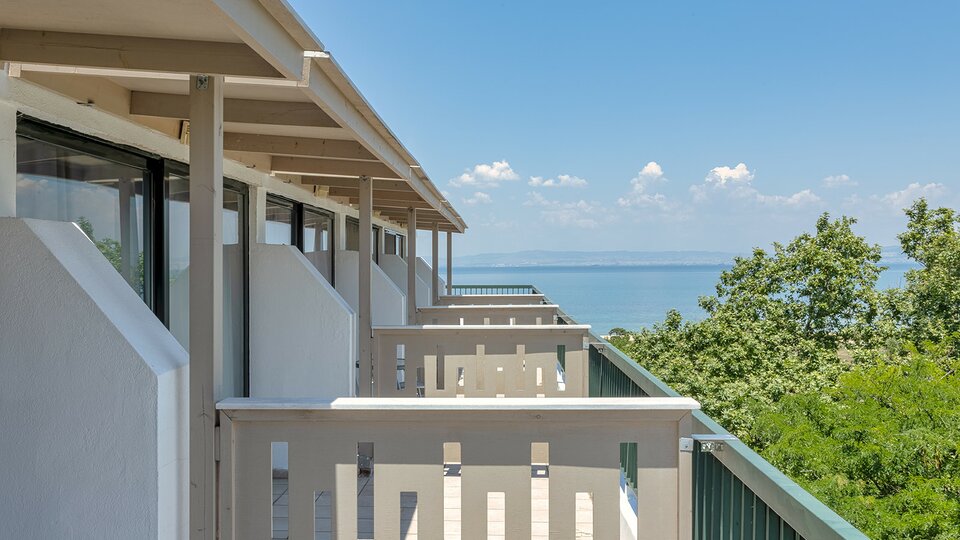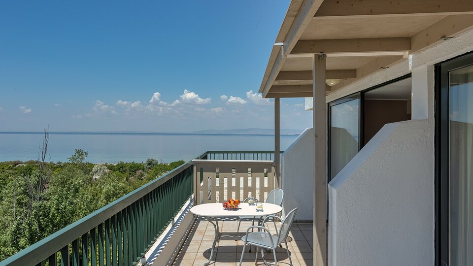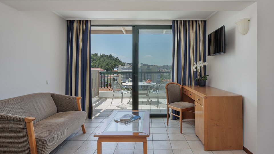 Deluxe suite – prostrane smeštajne jedinice površine oko 35 m², sa francuskim krevetom i bočnim pogledom na more. Namenjene su za dve osobe