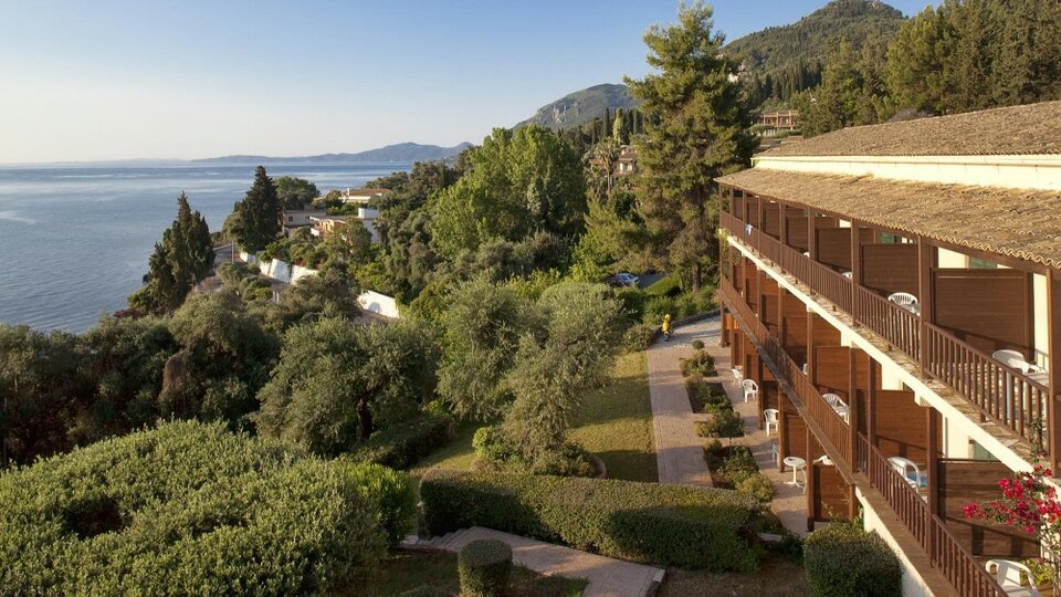 Opis i lokacija: Hotelski kompleks koji se nalazi na površini od oko 72.000 m², okružen zelenilom i uređenim vrtom. Kompleks je u potpunosti renoviran, a zahvaljujući kaskadnom obliku iz kompleksa se pruža divan pogled na Jonsko more i okolinu. Sastoji iz glavne zgrade i više bungalova sa smeštajnim kapacitetima. Nalazi se u mestu Perama, na istočnoj obali ostrva, udaljen oko 10 km od grada Krf.
