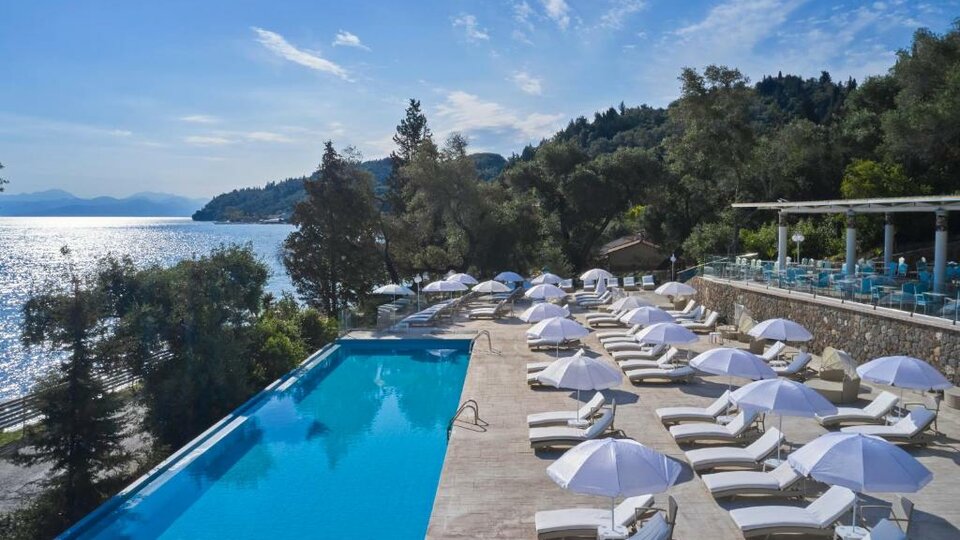 Opis i lokacija: Mythos Palace je savršeno mesto za odmor, smešten u srcu mirnog zelenog okruženja upotpunjenog azurnom obalom. Nalazi se 25km od glavnog grada Krfa. Ovo luksuzno letovališta sa 5 zvezdica je samo za odrasle preko 16 godina ( ADULTS ONLY ) . Hotel je dizajniran da oda počast bogatoj istoriji i nasleđu ostrva i posvećen je carici Sofiji Zoi Paleologini, bivšoj stanovnici ostrva Krf i supruzi cara Ivana III. Hotel se može pohvaliti grčkim, rimskim i vizantijskim uticajima u svom dekoru i arhitekturi, Neke od pogodnosti boravka uključuju dva bazena, teniski teren, uzbudljive aktivnosti na licu mesta i SPA centar sa saunom i zatvorenim bazenom. Smestite se u besprekorno opremljene sobe sa luksuznim sadržajima i izvanrednim pogledom. Prepustite se mediteranskim ukusima u jednom od hotelskih restorana. Vrhunac hotela Mythos Palace je Ouranos (na grčkom znači Nebo), restoran i bar na krovu sa pogledom na Sredozemno more.