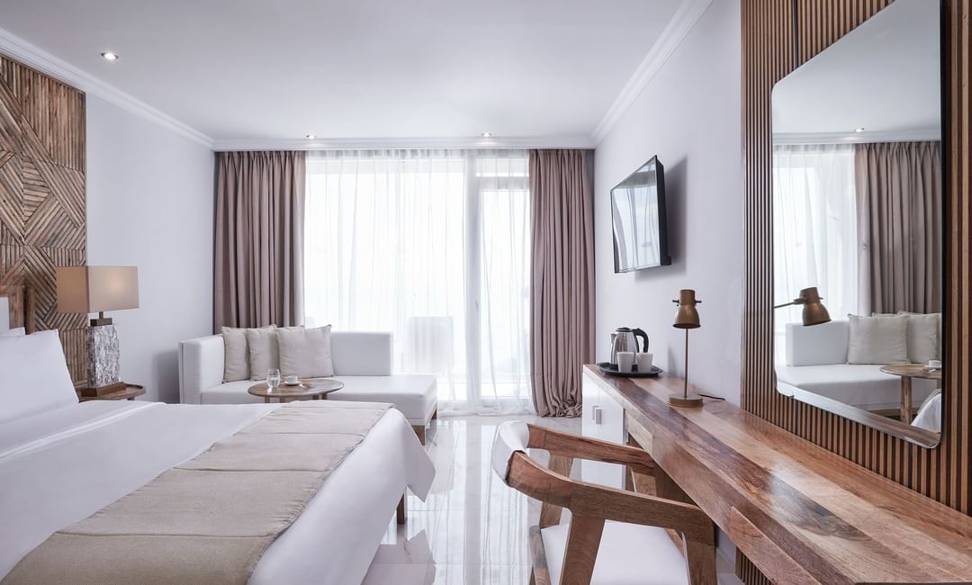 Superior soba sa izlaskom na bazen – smeštajne jediice površine oko 28m². Sadrže francuski ležaj ili dva osnovna ležaja i sofu za sedenje. Nalaze se u prizemlju i sa terase se direktno ulazi u bazen. Maksimalni broj osoba u sobi su dve.