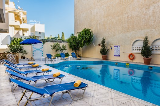 Opis i lokacija: Hotel se nalazi na samo 24km od aerodroma i grada Herakliona. Na samo 250 m od centra Harsonisosa i u neposrednoj blizini svih zanimljivih mesta u gradu, ali udaljen od buke glavnog puta.