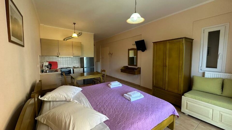 Studio - smeštajne jedinice sa francuskim ili dva osnovna ležaja I dodatnim ležajem za dete. Maksimalni broj osoba u sobi su tri. Imaju pogled ka moru i opremljenu kuhinju.
