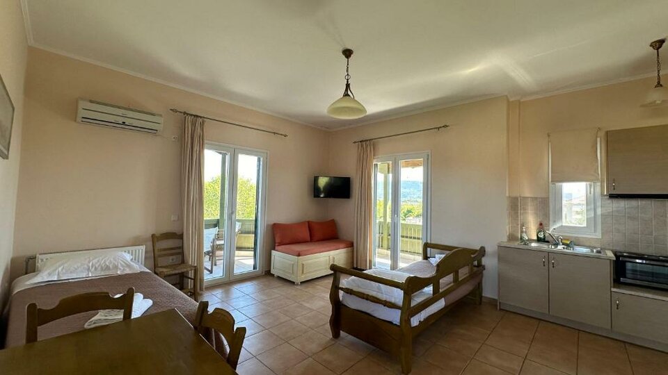 Opis i lokacija: Apartmanski kompleks Porto Nirikos nalazi se u naselju Kaligoni i udaljen je 1 km od centra grada Lefkasa. Na samo 2 km nalaze se prelepe plaže Agios Joanis i Miloi, gde imate priliku da isprobate razne vodene sportove kao što su jedrenje na dasci i kajtsurfing. Porto Nirikos je idealno smešten na samo 800 metara od marine. Kategorisan je sa tri grčka ključa za kvalitet.