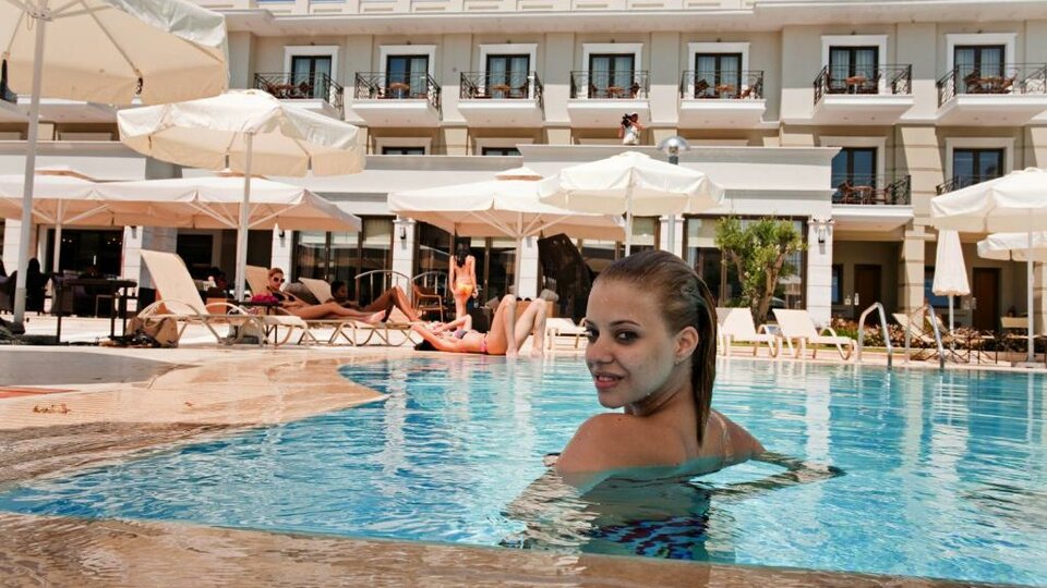 Hotelski sadržaji: Recepcija, bazen, restoran, lift, lobi bar, bar kod bazena, igralište za decu, teretana.
