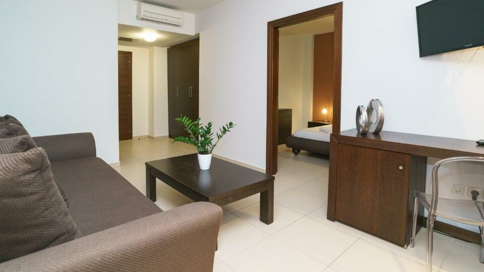 Porodični apartman - smeštajne jedinice površine oko 45m², sa francuskim ležajem ili dva osnovna ležaja u spavaćoj sobi i jednom ili dve sofe u dnevnom boravku. Moguće je smestiti 4 odrasle osobe. U zavisnosti od pozicije ovaj tip smeštajnih jedinica ima pogled na dvorište ili more. Kapacitet sobe: Max 4 osobe ( Odrasli: Max 4 , Deca: Max 2 )