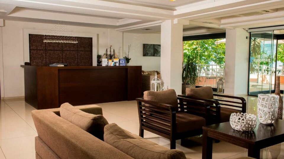 Hotelski sadržaji: Recepcija, bazen sa odeljkom za decu, restoran, lobi bar, bar kod bazena, odbojka na pesku.