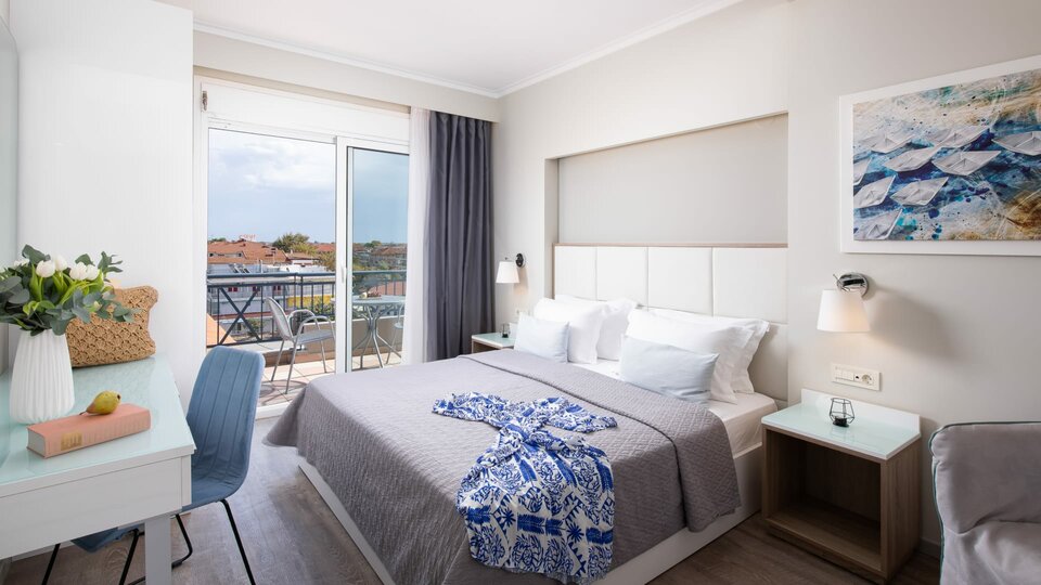 Junior Suite - smeštajne jedinice sa francuskim ležajem ili dva osnovna ležaja i pomoćnim ležajevima (sofa i fotelja na razvlačenje ) u jednom prostoru. Pomoćni ležaj je namenjen za smeštaj dve odrasle osobe ili do dva deteta uzrasta do 6 godina. Ovaj tip smeštajnih jedinica ima pogled na more. Maksimalni broj osoba u sobi je do četiri.