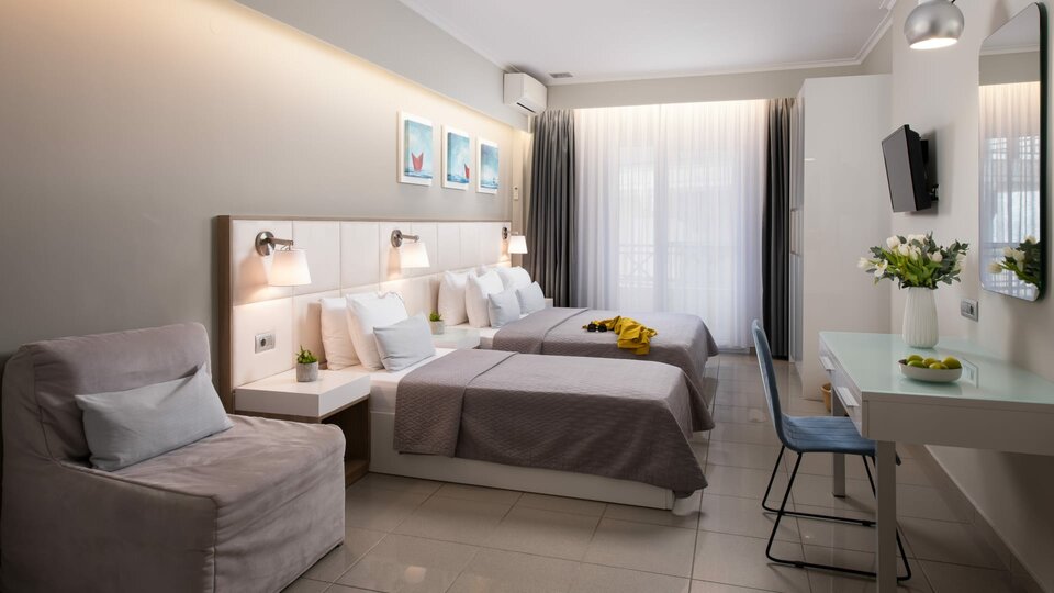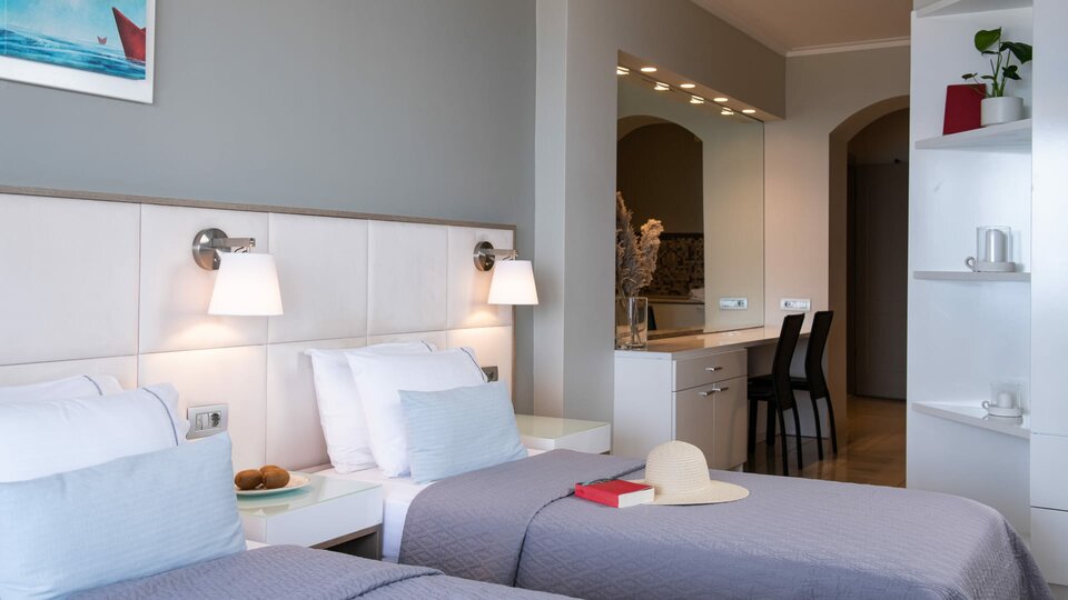 Superior porodična soba - smeštajne jedinice sa francuskim ležajem ili dva osnovna ležaja i pomoćnim ležajevima (sofa i fotelja na razvlačenje ) u jednom prostoru. Ovaj tip smeštajnih jedinica ima pogled na more. Maksimalni broj osoba u sobi je do četiri.