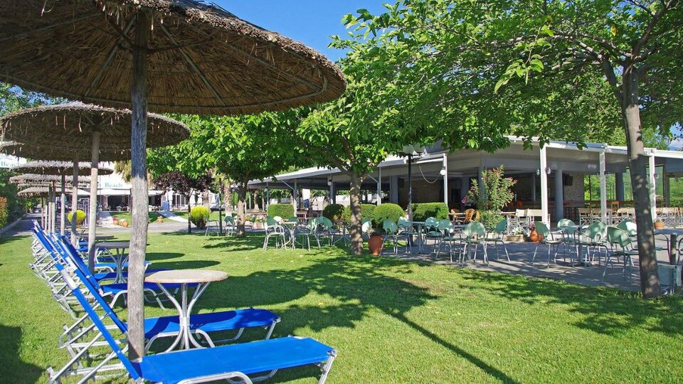 Opis i lokacija: Nalazi se u letovalištu Platamon, okružen zelenilom, u ambijentu u kom se spajaju planinski vazduh sa Olimpa i miris Egejskog mora. Hotel je idealno mesto za miran odmor.