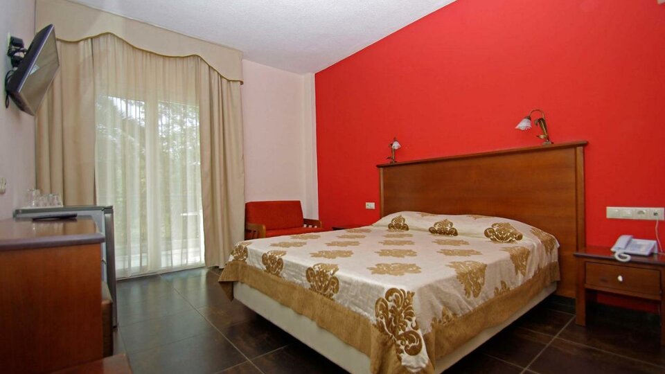 Sve sobe su opremljene TWC-om, TV-om, telefonom, klima uređajem , sef (uz doplatu na licu mesta 2 eur dnevno), mini frižiderom, balkonom ili terasom. Mogućnost koriščenja krevetca za bebe uz prethodnu najavu i doplatu na licu mesta ( 5 eur dnevno ). Hotel zadržava pravo promene poslovne politike i korekcije doplate za određene usluge (parking, WIFI, korišćenje bebi krevetca, sefa, ležaljki, suncobrana i slično), za šta organizator putovanja ne snosi odgovornost i ne može uticati.