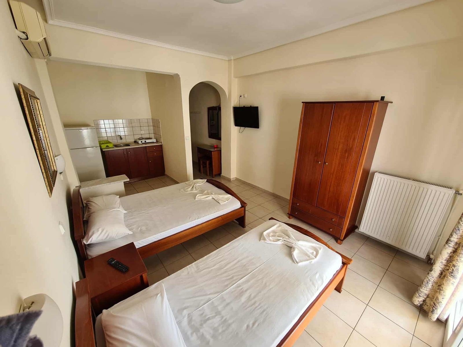 Studiji su opremljeni TWC, TV-om, klima uređajem (uz doplatu na licu mesta), mini čajnom kuhinjom, balkonom ili terasom, Wi-fi (slabog protoka), dostupan u periodu od juna do septembra.