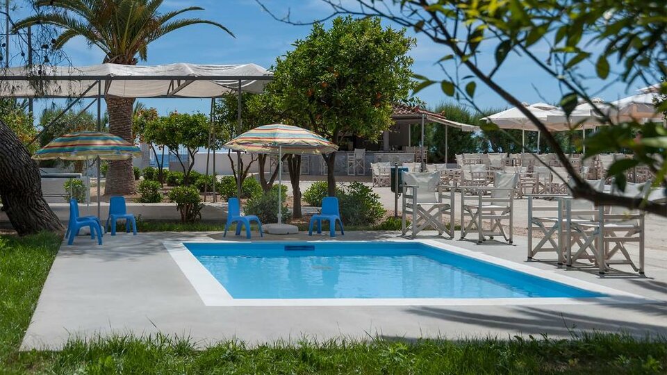 Opis i lokacija: Hotel se nalazi u malom mestu Drepano , na odličnoj lokaciji usred mirisnih vrtova, lepog prirodnog okruženja i beskrajnog plavog mora, na plaži , samo 11 km od Nafplija. Smešten u uređenoj bašti ispunjenoj stablima pomorandže, zaštitnim znakom ovog kraja, ovaj porodični hotel obezbeđuje opuštajući boravak. Od značajnih lokaliteta u blizini je moguće otići do istorijskog grada Nafpliona, turističkog mesta Tolo i velikog broja arheoloških nalazišta, uključujući Tirintu, Nemeju i Epidavros.