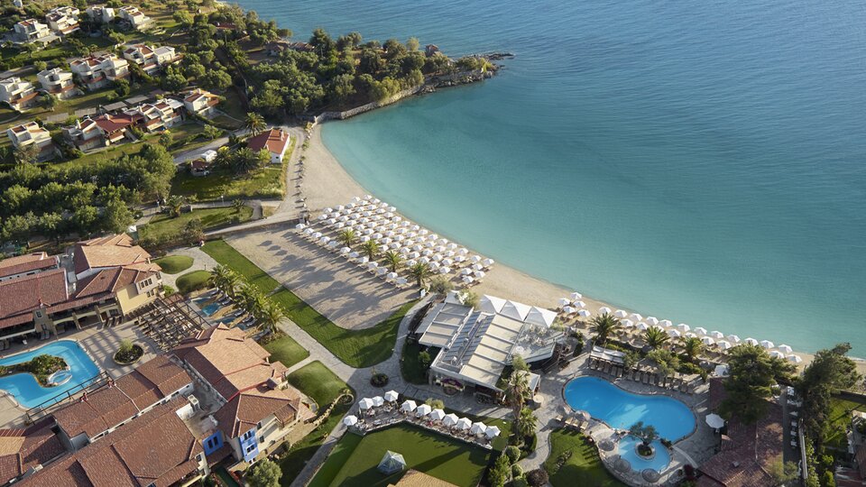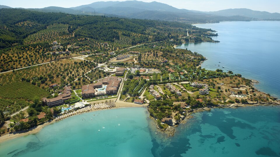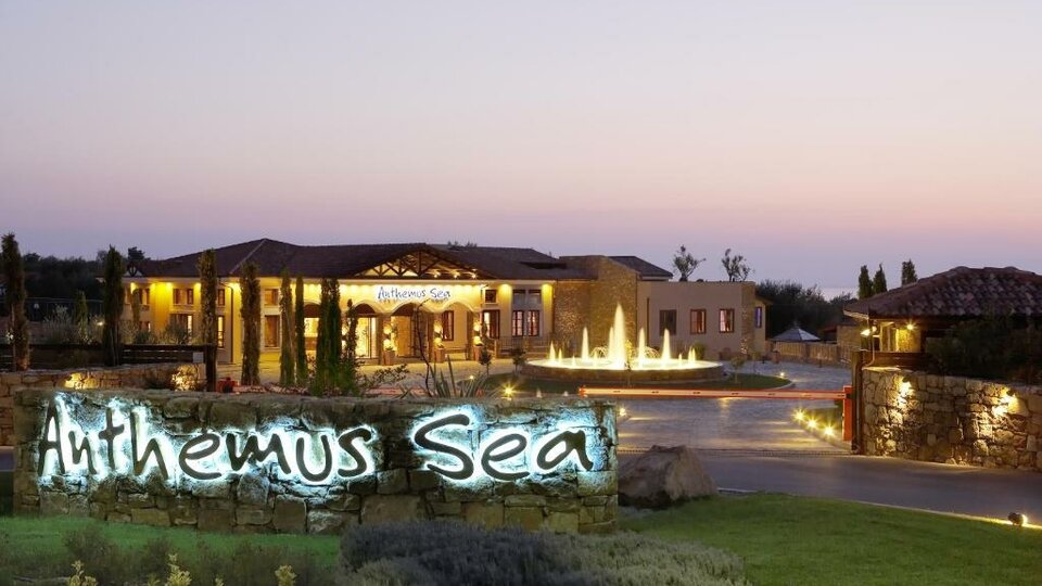 Opis i lokacija : Jedinstveni hotel i spa centar Anthemus Sea Beach, smešten na površini od 40.000 kvadratnih metara, nalazi se u slikovitom zalivu duž mirne obale Elija na Sitoniji na Halkidikiju, odmah pored peščane plaže nagrađene „Plavom zastavom“. Na samo 95 km od aerodroma „Makedonija“ u Solunu, 10 km od grada Nikitija i 6 km od živopisnog sela N. Marmaras, hotel i spa centar Anthemus Sea Beach kombinuje tradiciju sa elegancijom i nudi, između ostalog, novu recepciju, salone, piano bar, restoran sa krovnom baštom, glavni restoran, tavernu sa jelima po narudžbini, luksuzni velnes centar (700 kvadratnih metara), nove konferencijske sale (za do 650 osoba) i amfiteatar.