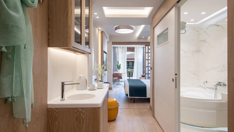 Superior soba pogled bazen ili more - smeštajne jedinice veličine oko 26m2. Opremljeni su sa francuskim ležajem ili dva osnovna kreveta .Maksimalni broj osoba u sobi su dve i dete do 3 godine.