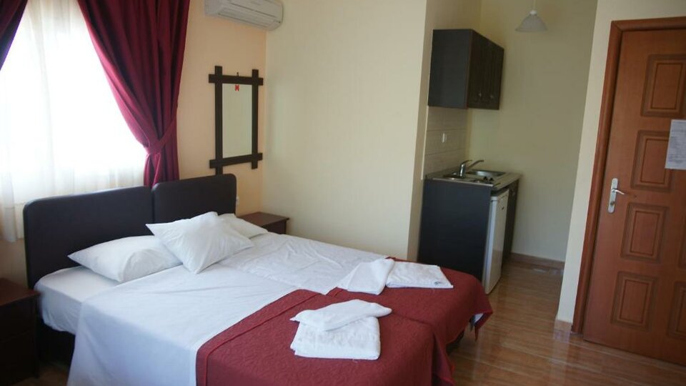 Studio - smeštajne jedinice površine oko 19-22 m² sa francuskim ležajem ili dva odvojena ležaja i pomoćnim ležajem (najčešće sofa ). Imaju pogled na more ili na baštu. Namenjeni su za smeštaj 2-4 osobe. Kapacitet sobe: Max 4 osobe ( Odrasli: Max 3 , Deca: Max 2)