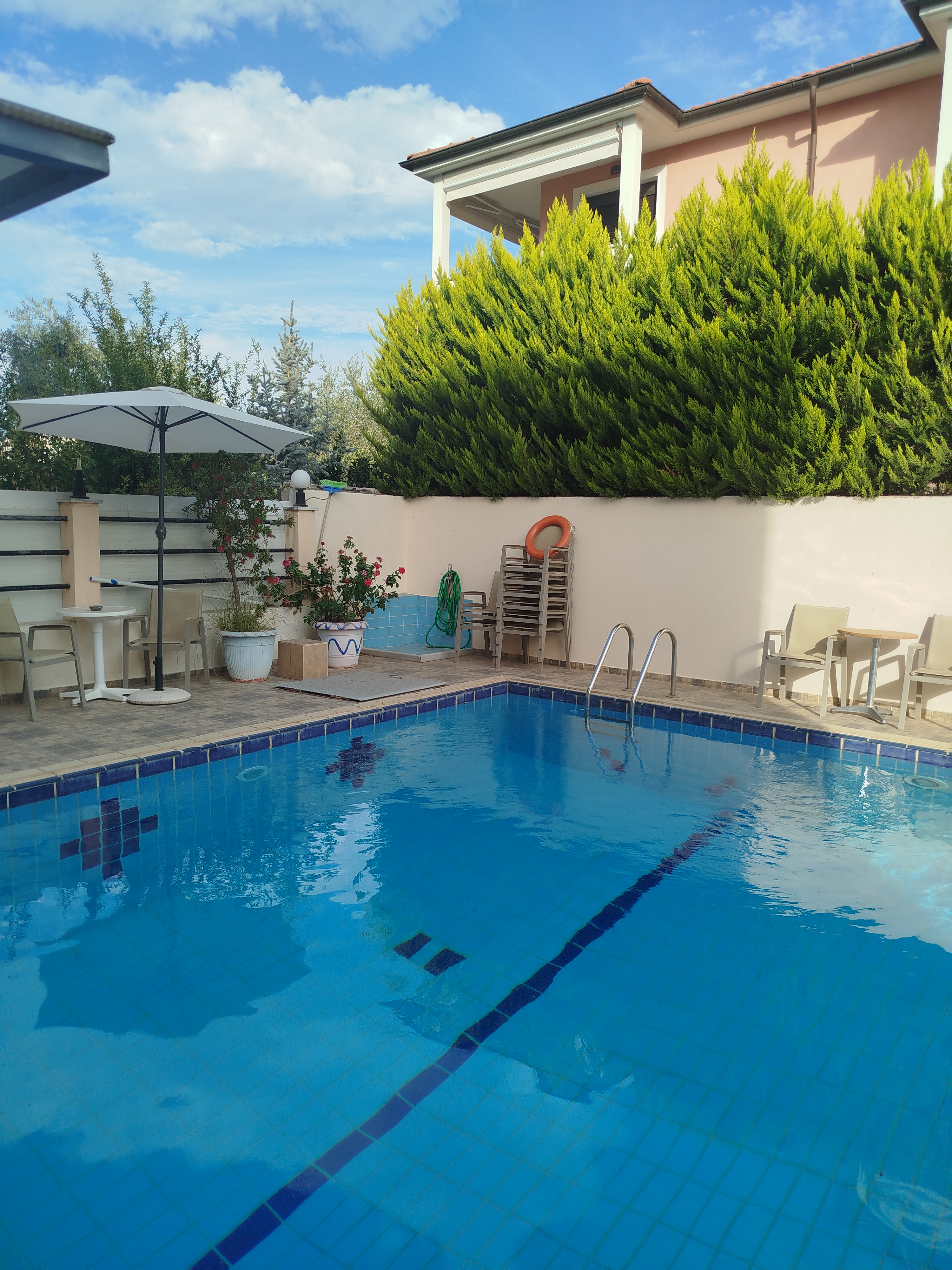 Opis i lokacija: Dvospratna kuća sa prizemljem, u sklopu koje se nalazi bazen. Nalazi se u mirnom delu Limenasa, na oko 800 m od centra. Od najbliže prodavnice udaljena je oko 300 m.