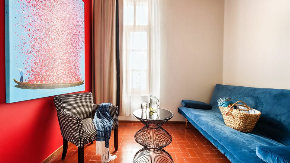 Just – Sobe predviđene za 2 odrasle osobe i jedno dete do 12 godina. Imaju veliki francuski ležaj i fotelju na tazvlačenje. Sobe imaju veliki prozor sa pogledom na grad ili dvorište ( nemaju balkon). Maksimalni broj osoba u sobi su tri.