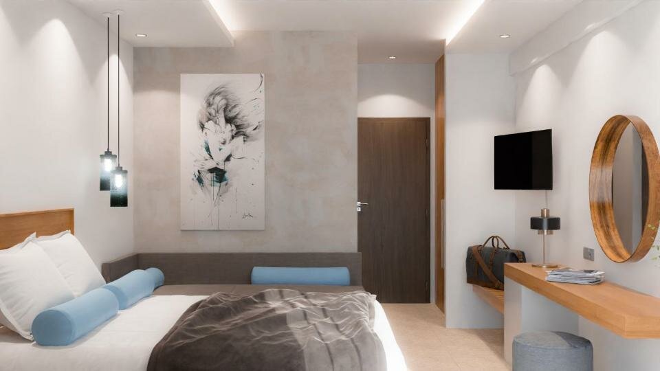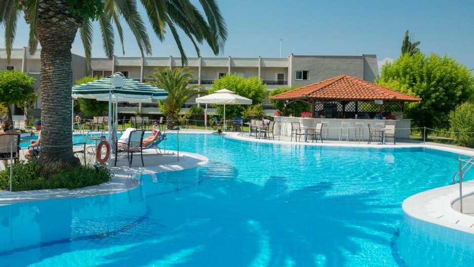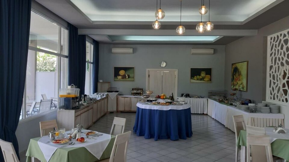 Opis i lokacija: Smešten u prelepom ambijentu, okružen palmama i baštom, nalazi se na oko 400 m od glavne luke i oko 600m od arheološkog muzeja i centra Limenasa.