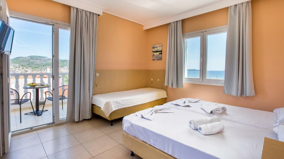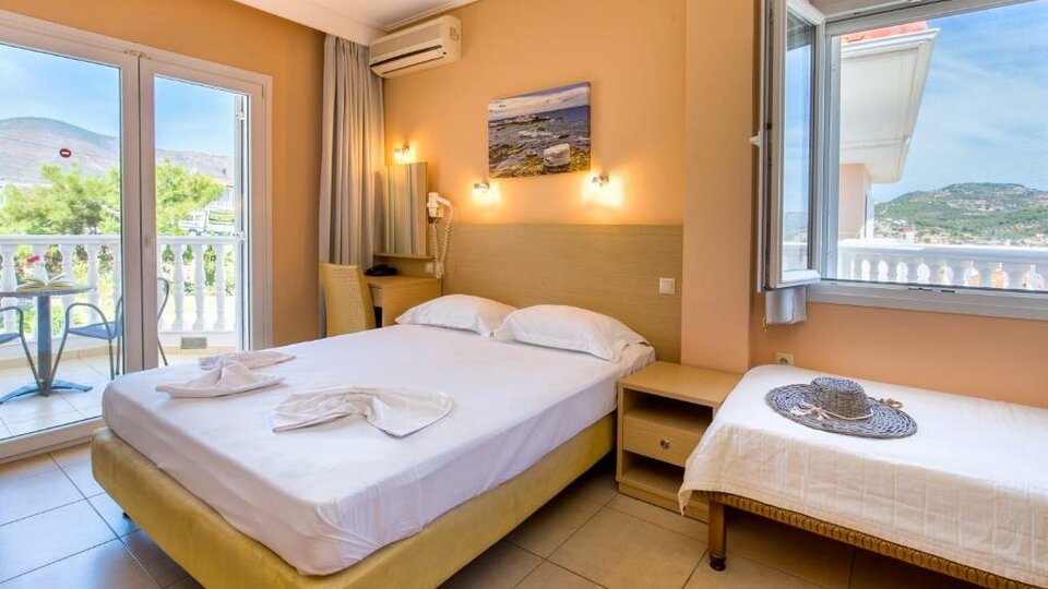 Opis i lokacija: Mali porodični hotel blizu plaže, na ulazu u Limenariju, u slikovitom okruženju, udaljen je oko 1 km od centra.
