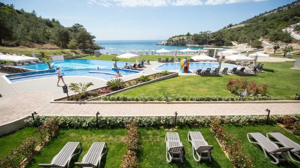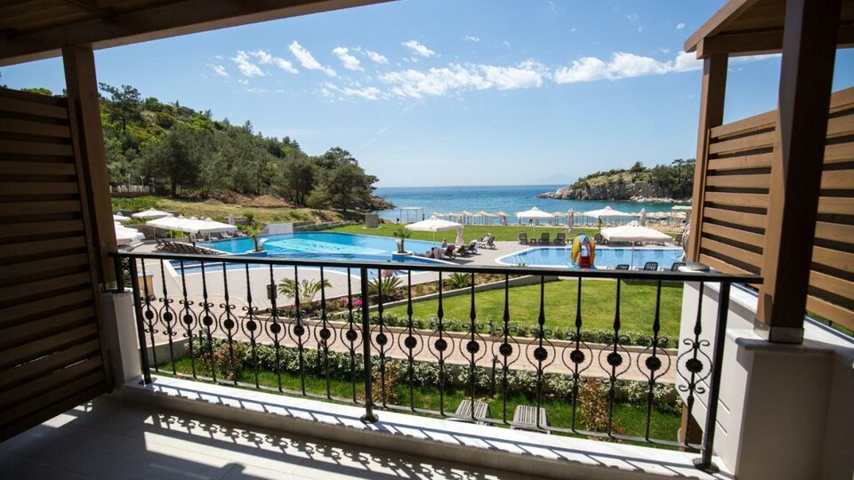 Opis i lokacija: Luksuzan hotelski kompleks smešten u nesvakidašnjem ambijentu, okružen borovom šumom i plavetnilom Egejskog mora, pruža mogućnost nezaboravnog odmora. Kompleks je izgrađen u kaskadama odakle se pruža predivan pogled na Svetu Goru i zaliv Agios Ioannis Lukas. Sastoji se od glavne zgrade i više objekata sa smeštajnim kpacictetima. Nalazi se u zalivu Agios Ioannis Lukas udaljen oko 22 km od Potosa i oko 29 km od Limenasa.