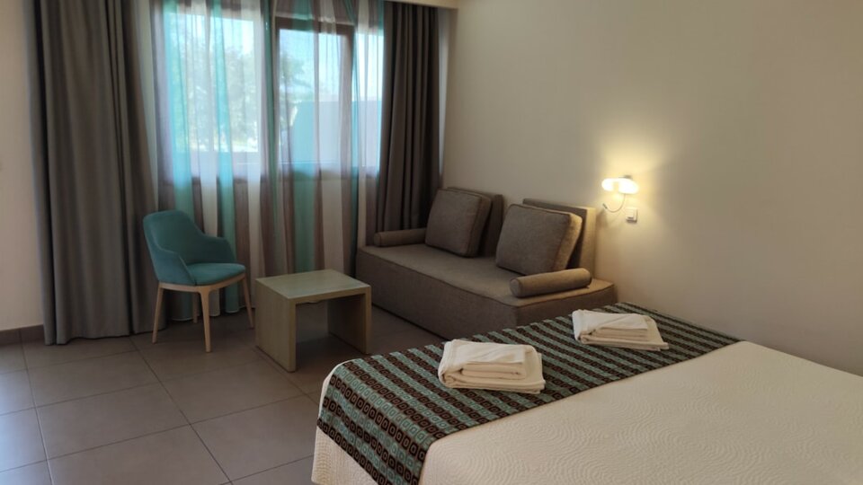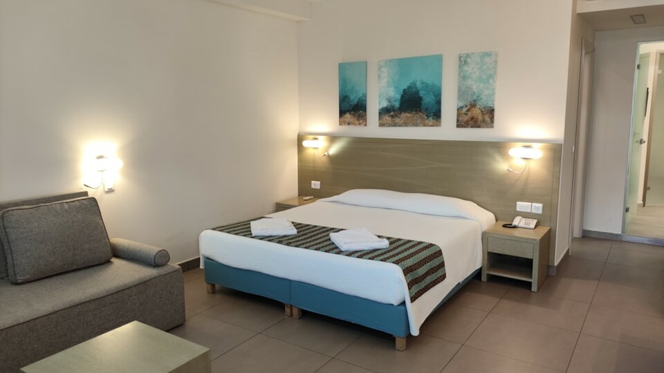 Junior porodični suite - smeštajne jedinice površine 35-40 m², Sastoje se od spavaće sobe u kojoj su francuski ležaj i sofa i dečje sobe sa dva kreveta. Sa terase imaju izlazi na bazen. Maksimalni broj osoba u sobi je do pet.