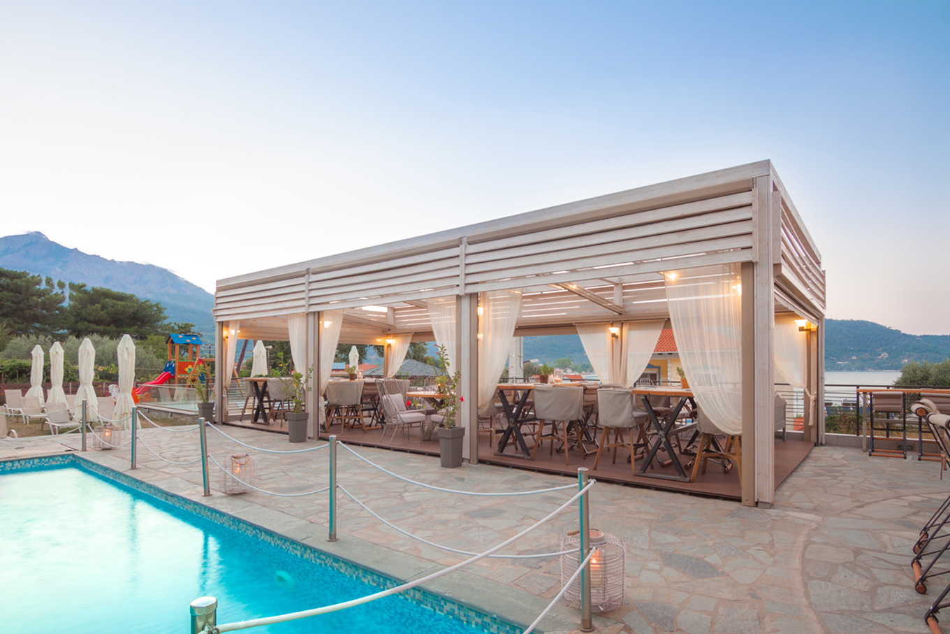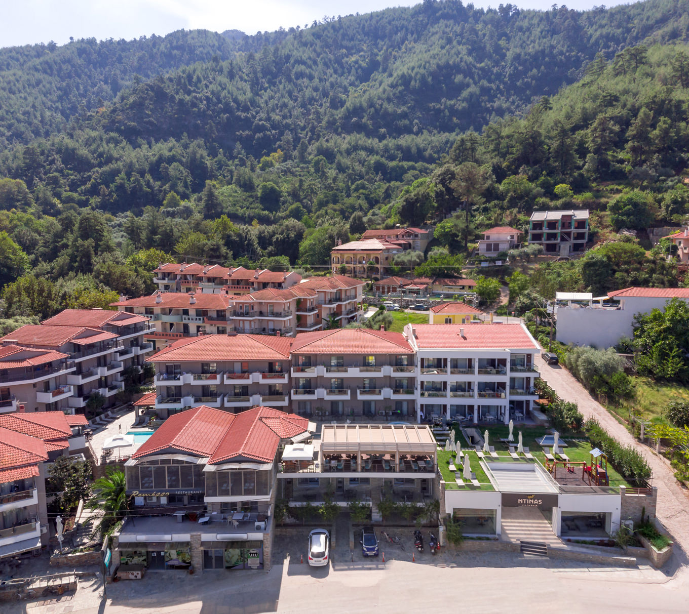 Opis i lokacija: Smešten u blizini veličanstvene Zlatne plaže i okružen prirodnim lepotama na grčkom ostrvu Tasos, Ntinas Filoxenia nudi niz usluga pogodnih za porodice sa decom. Hotelski kompleks se sastoji od 5 zgrada sa različitim tipovima soba, poseduje dva bazena koja su povezana vodenim kanalom i vodopadom, dečiji bazen, otvoreni đakuzi sa hidro masažom, restoran, dva bara pored bazena, krovnu baštu, dečije igralište, mali supermarket, parking. Nalazi se u samom centru mesta Skala Potamia, u neposrednoj blizini glavnog šetališta, prodavnica, restorana i kafića.