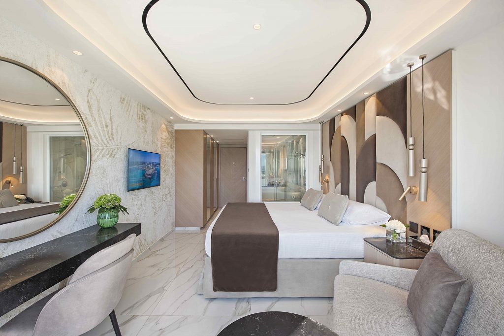 Junior Suite su prostrane sobe površine 37m2 idealne za porodice. Sastoje se od spavaće sobe sa francuskim (king size) ili twin krevetima odvojene kliznim vratima od prostorije u kojoj su smešteni pomoćni kreveti (kreveti na sprati ili 2 singl ležaja). Opremljene klima uređajem, telefonom, 2 SAT TV-om, sefom, setom za kafu/čaj, mini barom (uz doplatu), kupatilom sa kadom/TWC-om i fenom, WiFi-jem, balkonom. Imaju pogled na grad ili pogled na more (Sea View). Mogu smestiti maximum 3 odrasle osobe + 1 dete ili 2 odrasle osobe + 3 dece.