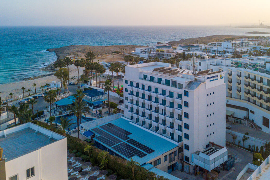 Anonymous Beach Hotel 3* je Adult Only hotel koji ne prima putnike mlađe od 16 godina. Nalazi se na odličnoj lokaciji na plaži Vathia Gonia, od koje ga deli ulica i na oko 1,5km od Nissi plaže. Udaljen je od centra Aja Nape oko 2,3km.