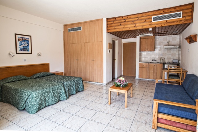 Studio sobe su prostrane dvokrevetne sobe sa twin ležajevima i mogućnošću pomoćnog ležaja (sofa na rasklapanje) za smeštaj treće odrasle osobe ili deteta. Mogu smestiti maksimum 3 osobe.