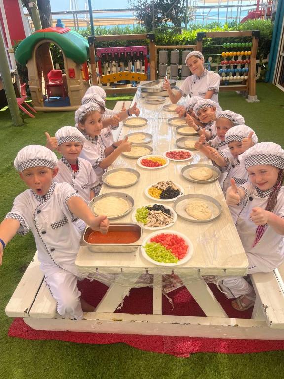 Sadržaj: Glavni i a’la carte restoran (roštilj/riblji - plaća se uz obaveznu rezervaciju), 5 barova, poslastičarnica, unutrašnji bazen, bazen za decu i odrasle , 3 vodena tobogana, mini aqua park za decu,mposeban deo plaže za bebe,Spa centar , tursko kupatilo, parna soba, sauna, fitnes (za osobe iznad 15 godina), aerobik, vaterpolo, akvabik, odbojka na pesku, košarka, stoni tenis, pikado, mini fudbal, mini golf,diskoteka (ulaz), animacija, dečiji meni, dečiji bazen, dečije igralište, mini klub (4-12 godina).