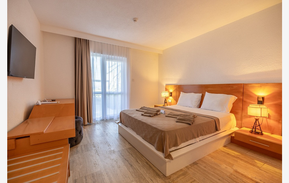 Smeštaj: Standardne sobe - su isključivo dvokrevetnedvokrevetne ili dvokrevetne sa pomoćnim ležajem, opremljene TWC-om, TV-om, klima uređajem, fenom za kosu, telefonom , balkonom i mini barom (dodatno se plaća).Kapacitet sobe:max 3 odrasle osobe ili 2 odrasle osobe i 1 dete do 11,99 god.
