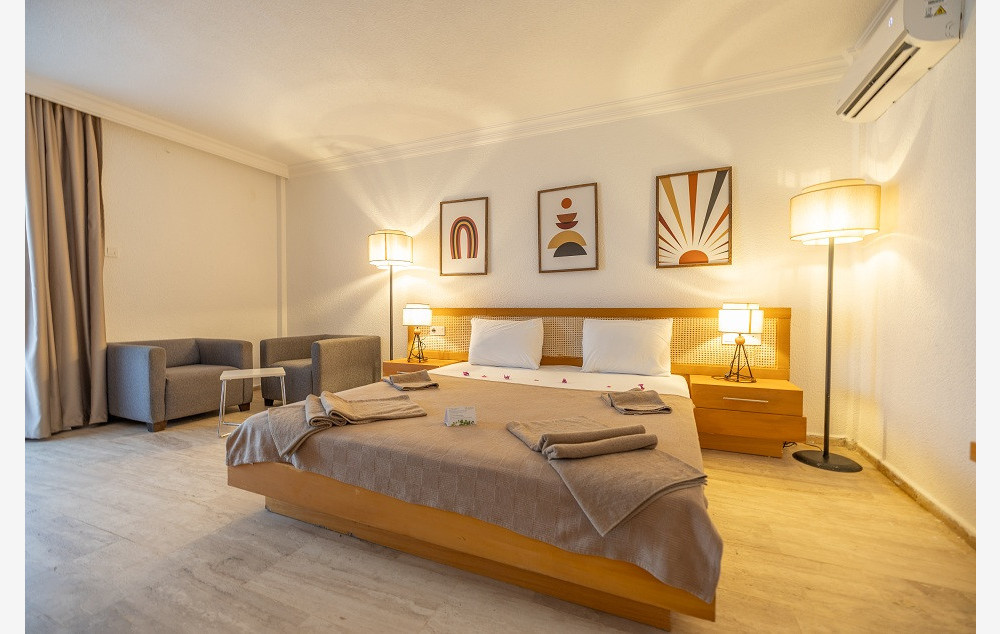 Lokacija: Hotel se nalazi 4km od Turgutreisa, na plaži, na 22 kilometra od Bodruma i na oko 55 km od aerodroma u Bodrumu.Hotel poseduje 80 smeštajnih jedinica.