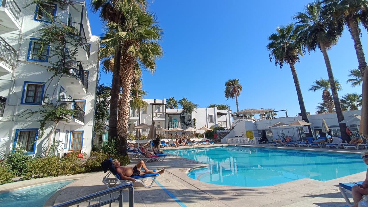 Lokacija: Nalazi se u Gumbetu, 4 km od centra Bodruma. Hotel ima dobru lokaciju, u neposrednoj blizini prodavnica, restorana, barova, kafića, na lepoj plaži, i sastoji se iz glavne zgrade i anex zgrade koja se nalazi preko ulice.