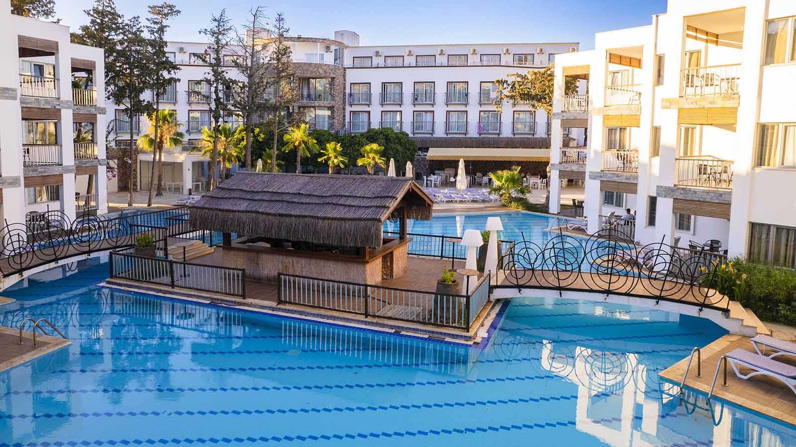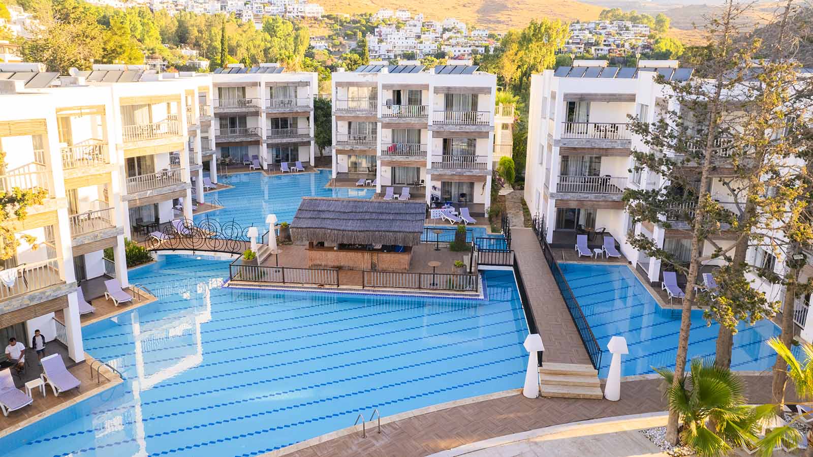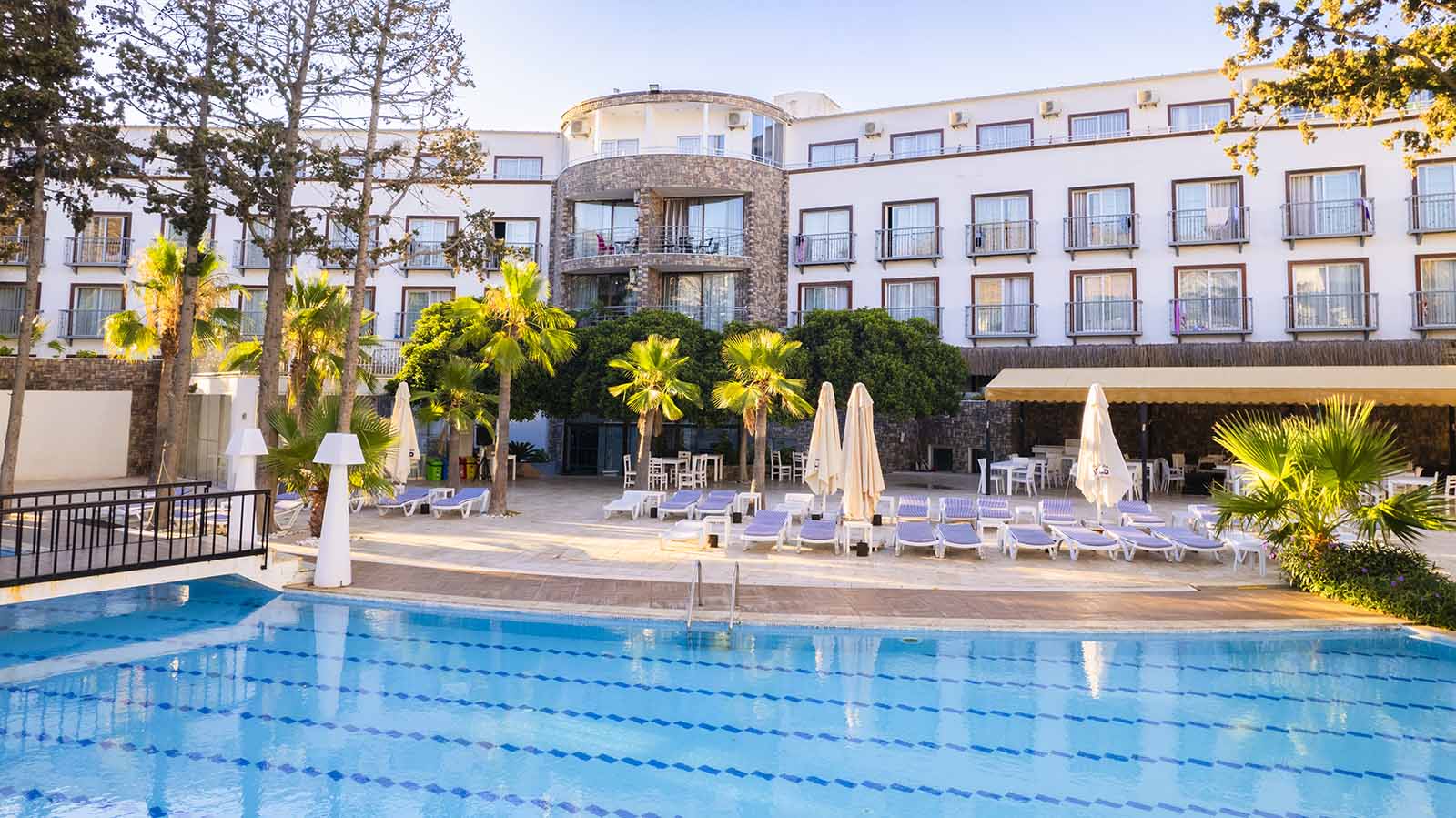 Lokacija: nalazi se na 8 km od centra mesta Turgutreis na 50 m od sopstvene plaže, i na oko 24 km od Bodruma.Sastoji se od glavne i aneks zgrada.
