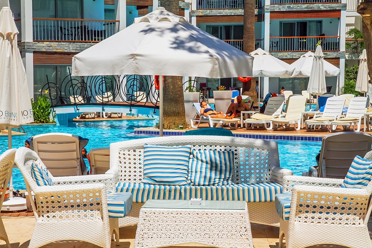 Sadržaj: Recepcija, nekoliko restorana i barova, bazen sa odeljkom za decu, bazen sa toboganom, mini klub za decu, stoni tenis, pikado, sauna, tursko kupatilo, fitnes, animacioni tim, sportovi na vodi (koji se dodatno plaćaju).