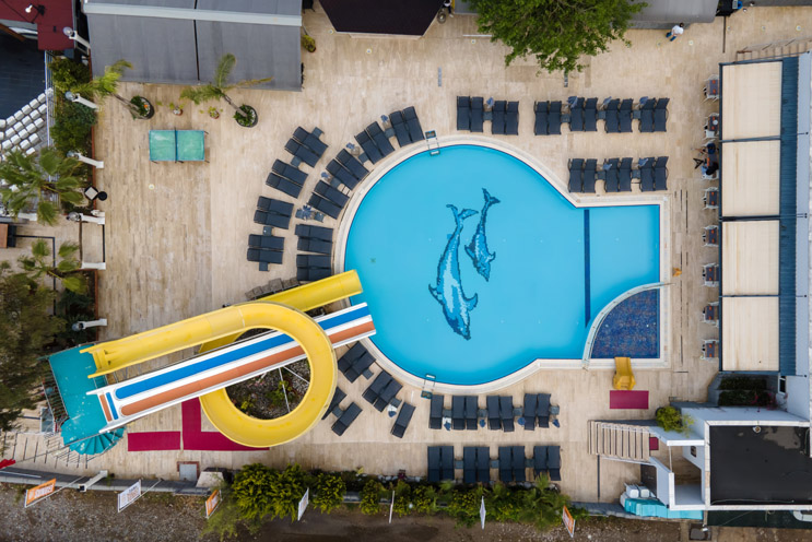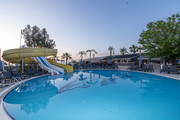 Sadržaj: recepcija, restoran, lobby bar, bar pored bazena, bazen sa dva tobogana i odeljkom za decu, mini klub za decu, fitnes centar, animacija prema hotelskom rasporedu. Uz doplatu se mogu koristiti sefovi, usluge saune, turskog kupatila i masaže.