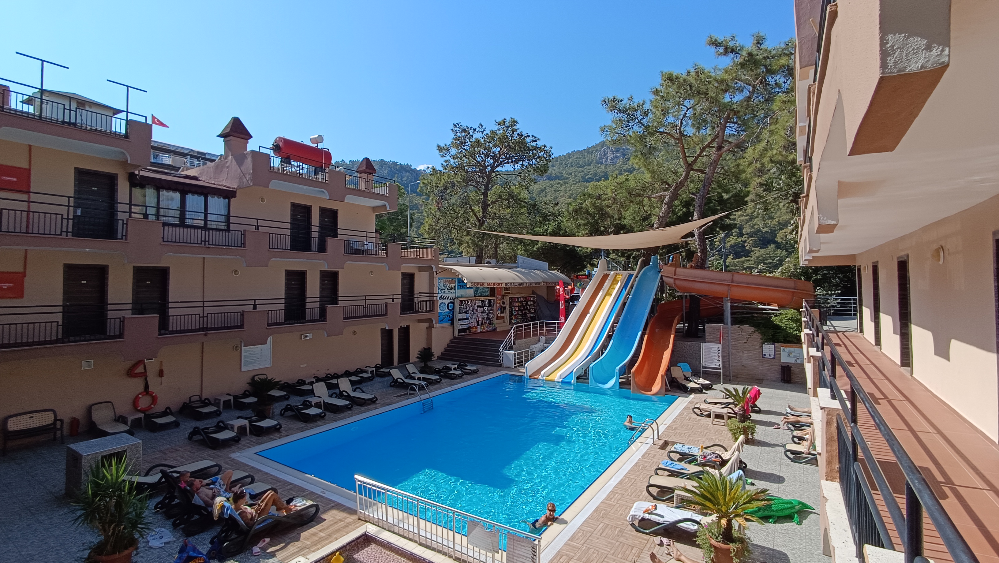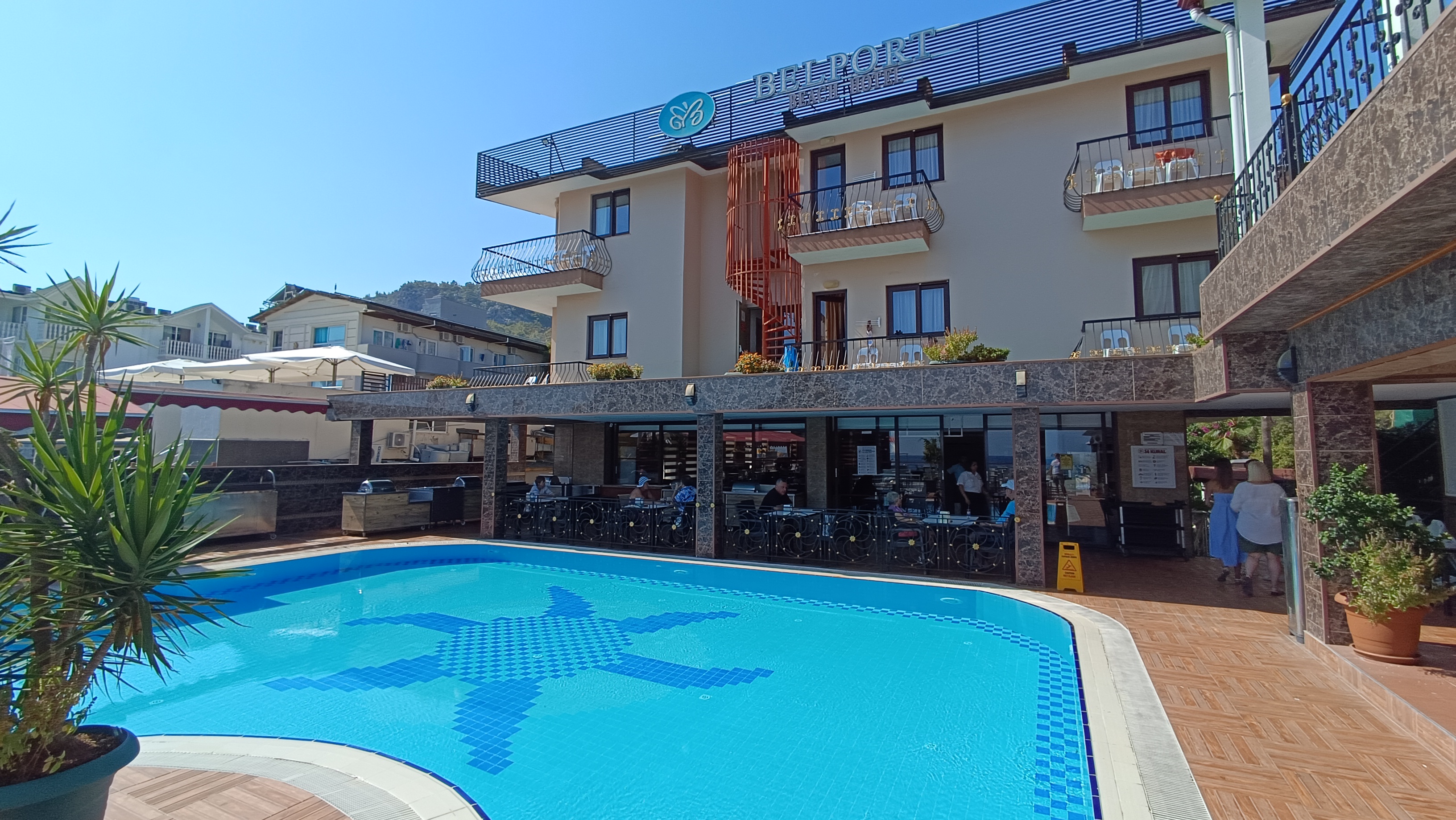 Lokacija: Hotel se nalazi u oblasti Beldibi. Od centra Kemera udaljen je oko 16 km, sastoji se iz četiri bloka dvospratnica bez lifta i po našem mišljenju zaslužuje izmedju 4* i 3*.