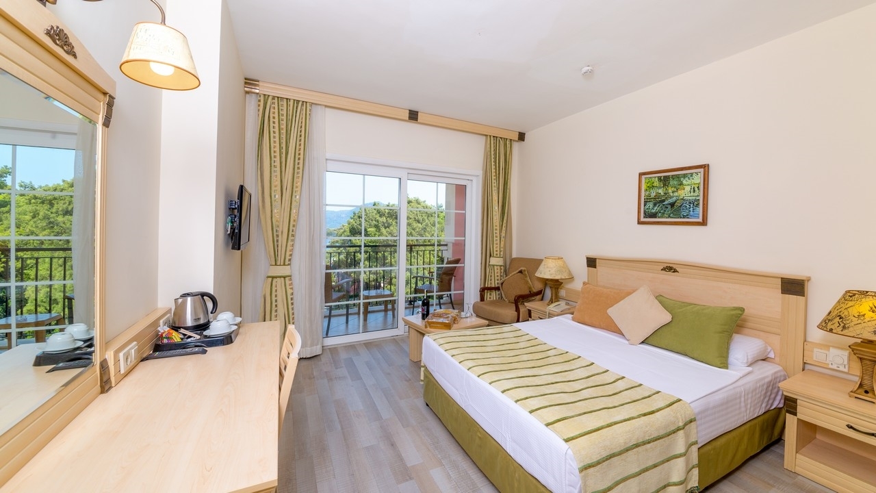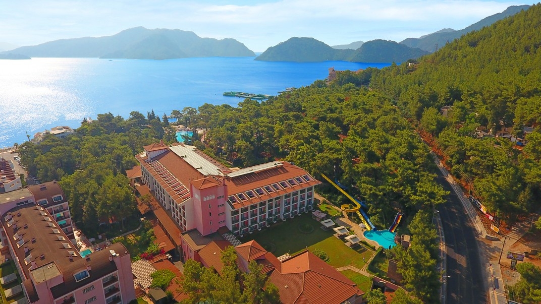 Lokacija: Hotelski kompleks se nalazi oko 5 km od Marmarisa na putu ka Ičmeleru, od koga je udaljen oko 2 km i sa oba mesta je povezan lepim uređenim šetalištem. Sastoji se iz glavne zgrade i vila.