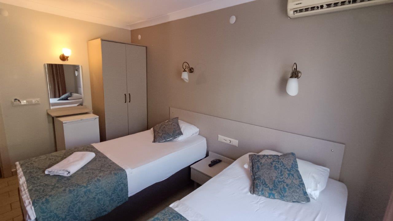 Smeštaj: Standardne i promo sobe – dvokrevetne ili dvokrevetne sa pomoćnim ležajem, opremljene TWC-om, balkonom i klima uređajem (dodatno se plaća u agenciji uz prethodnu najavu, 5€ dnevno po sobi). U odredjenom broju soba postoji mogućnost rentiranja mini frižidera uz doplatu od 2€ po danu po sobi na licu mesta.