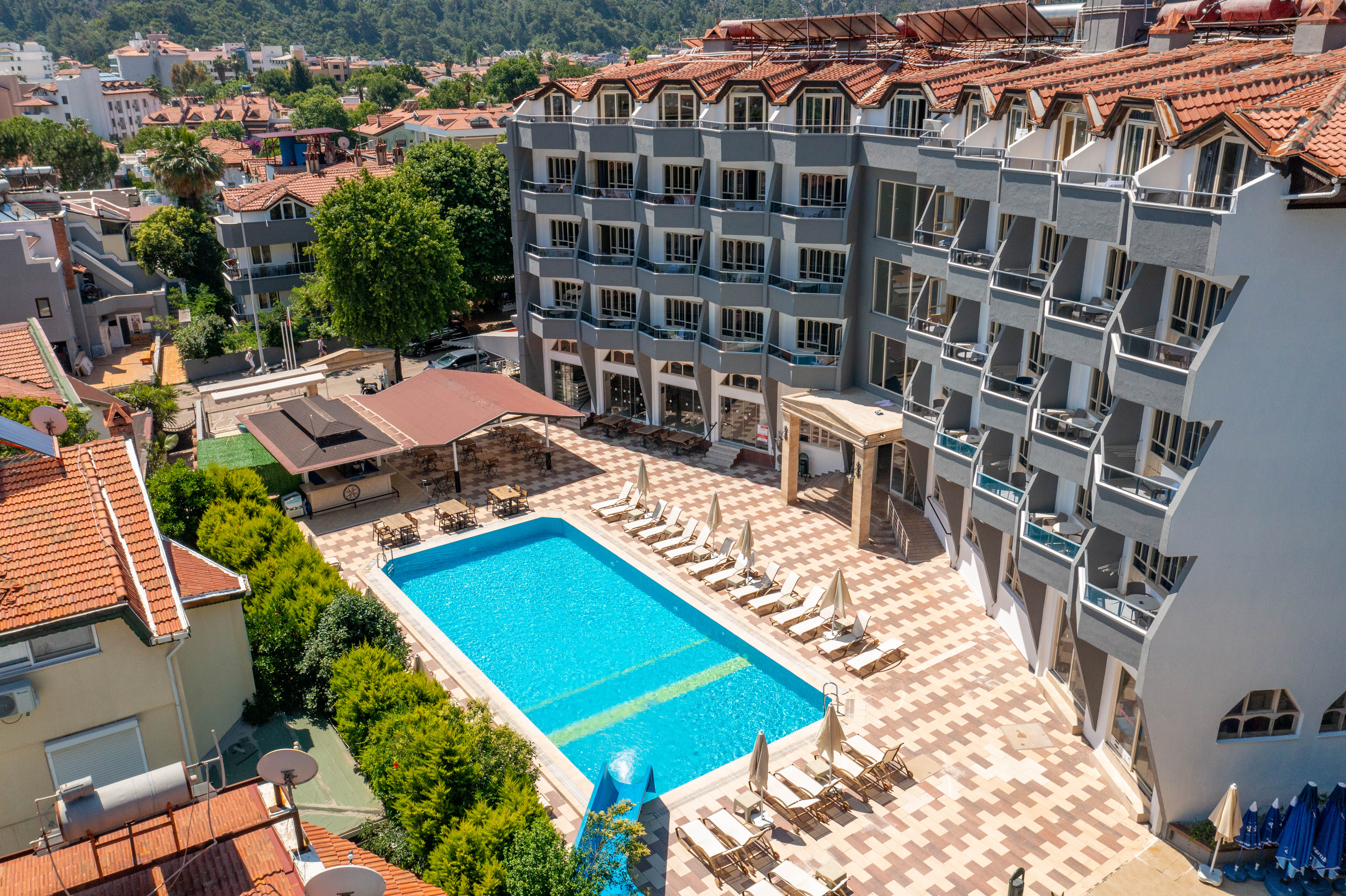 Lokacija: nalazi se u uvali Ičmeleru, oko 7 km od Marmarisa. Kompleks koji se sastoji iz dva bloka zgrada koje deli ulica i smeštaj se vrši po principu “run of the house” tj. u bilo koje zvanično registrovane smeštajne jedinice i određuje na licu mesta u zavisnosti od raspoloživih kapaciteta, te nije moguće birati objekat u kome će putnici biti smešteni. Hotel ima zvanično 3*, ali po našem mišljenju hotel odgovara standardima između 3* i 2 *.